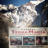 "Bienvenidos a TerraMaria, complejo de Cabañas en Mendoza. TerraMaria es tu mejor opción para disfrutar al máximo de alta montaña (cerro Aconcagua), los caminos del vino y las mejores actividades y deporte aventura. Te ofrecemos la máxima comodidad en un punto estratégico, con las mejores vistas y servicios. Cerca del Lago Potrerillos, Rio Mendoza, Cacheuta, principales bodegas y a 60 km de la ciudad de Mendoza."
